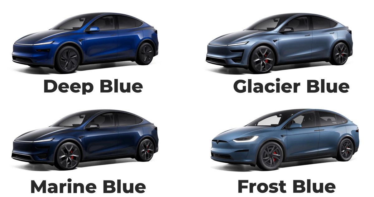 테슬라, 새로운 '마린 블루' 색상 출시; 테슬라의 다른 블루 색상과 비교