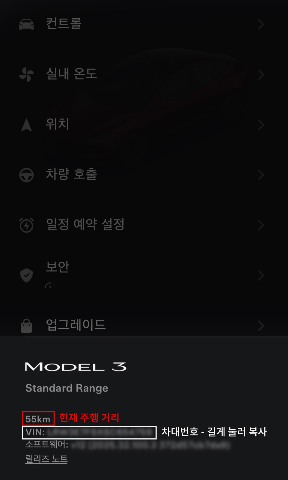 차대번호(VIN) 확인 및 기입 시, Tesla App에서 간편하게 복사하실 수 있습니다.