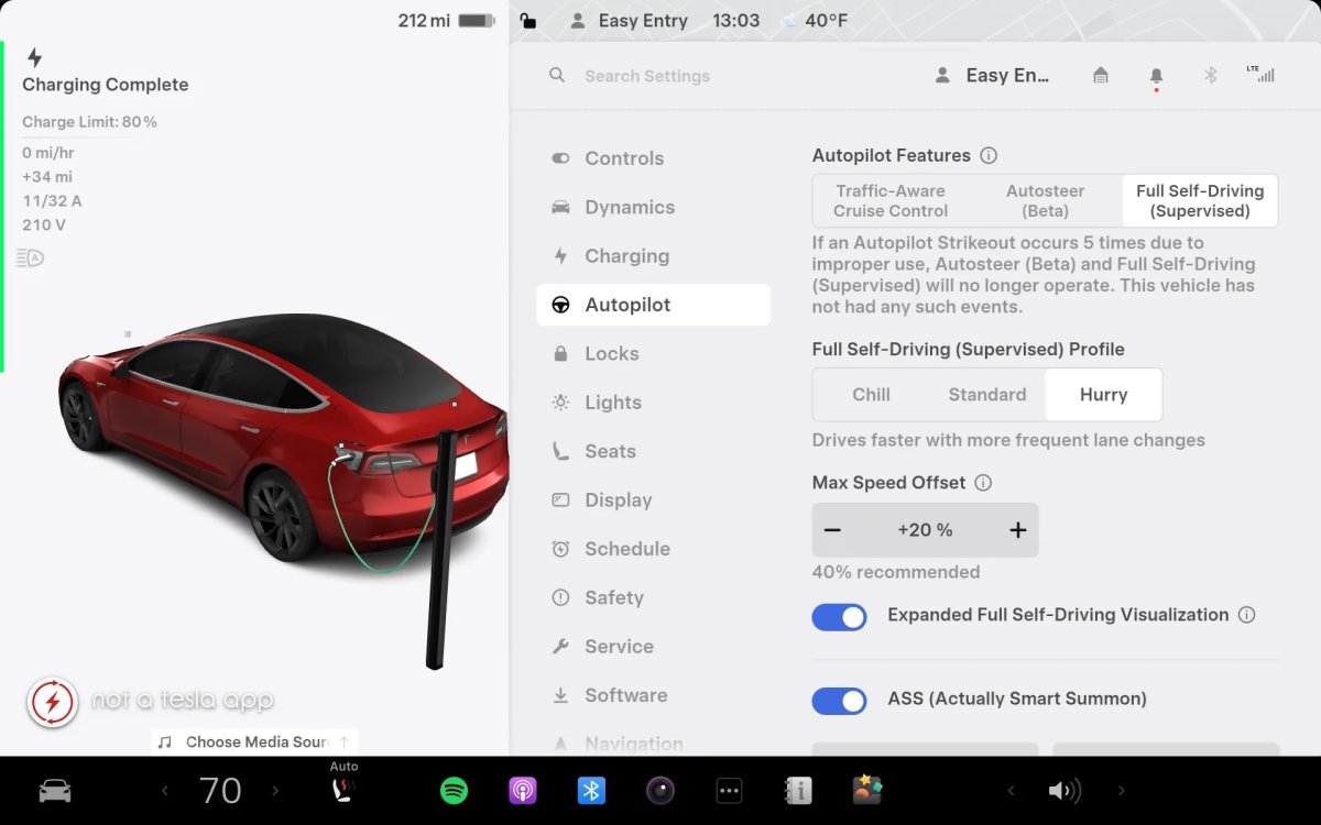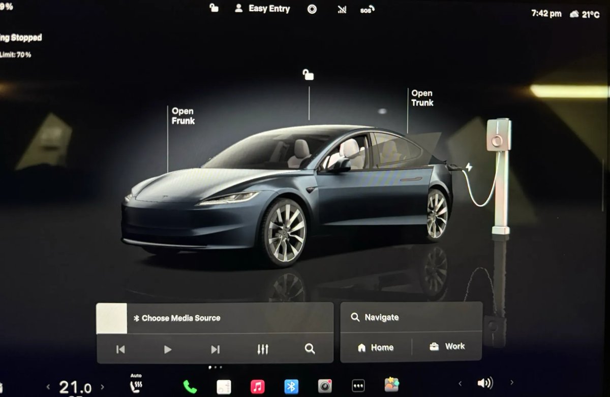 AMD 기반 차량의 충전 시각화는 주차 화면이 크기 때문에 훨씬 보기 좋지만, Intel 차량에도 표시됩니다.