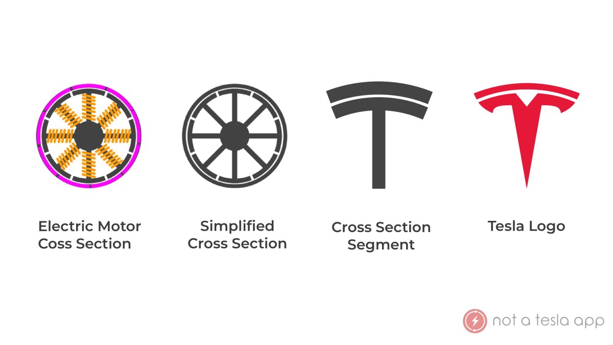 T 위 바깥쪽 선은 전기 모터의 고정자, 즉 권선이 들어 있고 전류가 인가되면 회전 자기장을 생성하는 정지 부품을 나타냅니다. 로고의 아래 부분은 움직이는 부품인 로터의 극 중 하나로, 역시 와이어로 감겨져 있어 자극을 형성합니다.