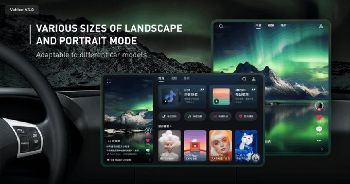 Vohico는 중국에서 가장 인기 있는 동영상 앱 중 하나이며, TikTok의 모회사인 ByteDance가 소유하고 있습니다. Vohico는 TikTok의 여러 기능을 다른 앱과 결합하여 최신 차량에서 사용할 수 있도록 터치 인터페이스로 제공합니다.